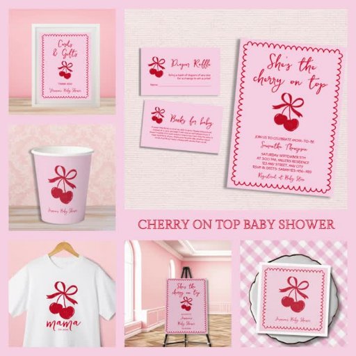 Cherry On Top Hand Drawn Bow Baby ShowerDiseñado por Laura Herranen