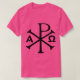 Este diseño presenta el emblemático símbolo Chi Rho, utilizado tradicionalmente como símbolo cristiano que representa las dos primeras letras de "Cristo" en griego.