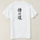 The back of the shirt features bold, vertical Japanese calligraphy (Kanji) reading "Samurai no Michi" (The Way of the Samurai), embodying the Bushido code in a modern streetwear style.