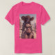 El color es muy bonito al natural, como la foto. El tejido es suave y de buena calidad. Sin defectos en el tintado, ni hilos sueltos o descosidos. Bien la impresión. Los bordes de las letras y el dibujo son nítidos, y el color contrasta muy bien con el de la camiseta.