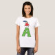 Abróchese el armario con esta alegre camiseta de mujer mostrando a un divertido personalizado de un chica bailando sobre una letra verde audaz A. Perfecto para profesores, madres o cualquiera que adora diseños alegres y coloridos. Una idea de regalo animada y única para cualquier ocasión.