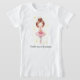 Esta es una linda camiseta para un chica que es bailarina. El diseño presenta una adorable bailarina con estrellas y salpicaduras detrás de ella y el texto, "Ballerina en proceso" debajo de la imagen. El texto es personalizable para que pueda agregar su propio texto/nombre, o dejarlo como está.