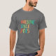 El color es muy bonito al natural, como la foto. El tejido es suave y de buena calidad. Sin defectos en el tintado, ni hilos sueltos o descosidos. Bien la impresión. Los bordes de las letras y el dibujo son nítidos, y el color contrasta muy bien con el de la camiseta.