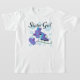 ¡Nuestras camisetas del diseño del chica del patinador, las tazas, los bolsos, las tarjetas, las almohadas, los relojes de pared, los recuerdos, las sudaderas con capucha, y otros artículos patinadores del tema ofrecen un par de patines del azul y de la lavanda y las manoplas en una secuencia rodeada por las porciones de copos de nieve y de texto hivernales que lea al chica del patinador!
