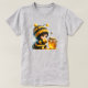 Camiseta con una linda imagen. Una chica con un traje de abeja crochet y una abeja a su lado. Viendo un frasco de miel.