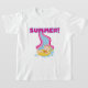 Un bonito diseño para el verano, con un chica de pelo rubio vestido con traje de baño y anillo que baja por el tobogán de agua y un texto rosa y azul caliente que lee VERANO! Camisetas de verano, bodysuit, bibs, tazas, tarjetas, bolsas, pegatinas, keepsakes, almohadas y mucho más.