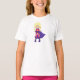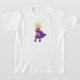 Camiseta Chica superhéroe, pelo rubio, cabo púrpura, héroe