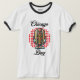 El color es muy bonito al natural, como la foto. El tejido es suave y de buena calidad. Sin defectos en el tintado, ni hilos sueltos o descosidos. Bien la impresión. Los bordes de las letras y el dibujo son nítidos, y el color contrasta muy bien con el de la camiseta.