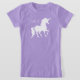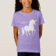 Opción blanca bonita de los chicas de la silueta del unicornio de los niños del color o de la camisa hermosos del niño. Elija de diversos estilos y tamaños. Silueta del unicornio en blanco con el nombre personalizado en blanco. Regalo de la diversión para los niños, tweenes, y adolescencias que aman unicornios y a criaturas mágicas. Colorido, moderno y elegante. www.SamAnnDesigns.com