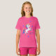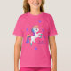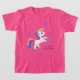 Camiseta de la fiesta de cumpleaños de la Unicornio Verde azulada y caprichosa para los chicas. Su tema encantador incluye un lindo unicornio en verde azulado, blanco, morado y rosa rodeado de corazones morados listos para rociar alegría y brillo. Personalizar con el nombre de su hijo. Los unicornios pueden agregar la magia a tu fiesta de cumpleaños.
