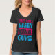 Camiseta con cuello en V de mujer, Negro, XL de adulto