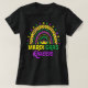 un elegante diseño de trajes de Mardi Gras que dice feliz mardi gras con un arco iris ir con máscaras de Jester y cuentas, para hombres, mujeres y niños que aman el festival del desfile de mardi gras en Nueva Orleans Louisiana.