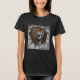 Chihuahua Peers Through A Grey Wooden Wall. On the Inside Of The Wall Are Rows Of Shelved Books like in a library. T-Shirt