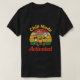 Un diseño divertido y lúdico con un alegre cono de helado personalizado con brazos, piernas y una gran sonrisa, bailando bajo la frase "Modo de Chill activado". El fondo tiene una puesta de sol vintage en cálidos colores retro, añadiendo un ambiente nostálgico y relajado de verano. Ideal para camisetas, tazas o artículos de verano.