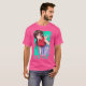 El color es muy bonito al natural, como la foto. El tejido es suave y de buena calidad. Sin defectos en el tintado, ni hilos sueltos o descosidos. Bien la impresión. Los bordes de las letras y el dibujo son nítidos, y el color contrasta muy bien con el de la camiseta.