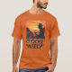 El color es muy bonito al natural, como la foto. El tejido es suave y de buena calidad. Sin defectos en el tintado, ni hilos sueltos o descosidos. Bien la impresión. Los bordes de las letras y el dibujo son nítidos, y el color contrasta muy bien con el de la camiseta.