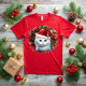 This charming girl's t-shirt radiates joy and tenderness in every detail. In its design, the tender face of a kitten with a Christmas hat stands out, adding a festive and endearing touch to the garment. The kitten is framed by a Christmas wreath, creating an image that evokes the magic and charm of the festive season. With his playful look and Christmas hat, the kitten becomes the perfect companion to celebrate Christmas with fun and joy. This design is an expression of the happiness and warmth of Christmas, perfect for the little girl to enjoy the season with style and festive spirit.
