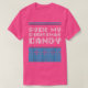 El color es muy bonito al natural, como la foto. El tejido es suave y de buena calidad. Sin defectos en el tintado, ni hilos sueltos o descosidos. Bien la impresión. Los bordes de las letras y el dibujo son nítidos, y el color contrasta muy bien con el de la camiseta.