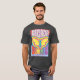 El color es muy bonito al natural, como la foto. El tejido es suave y de buena calidad. Sin defectos en el tintado, ni hilos sueltos o descosidos. Bien la impresión. Los bordes de las letras y el dibujo son nítidos, y el color contrasta muy bien con el de la camiseta.