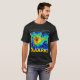 El color es muy bonito al natural, como la foto. El tejido es suave y de buena calidad. Sin defectos en el tintado, ni hilos sueltos o descosidos. Bien la impresión. Los bordes de las letras y el dibujo son nítidos, y el color contrasta muy bien con el de la camiseta.