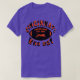 El color es muy bonito al natural, como la foto. El tejido es suave y de buena calidad. Sin defectos en el tintado, ni hilos sueltos o descosidos. Bien la impresión. Los bordes de las letras y el dibujo son nítidos, y el color contrasta muy bien con el de la camiseta.