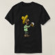 El color es muy bonito al natural, como la foto. El tejido es suave y de buena calidad. Sin defectos en el tintado, ni hilos sueltos o descosidos. Bien la impresión. Los bordes de las letras y el dibujo son nítidos, y el color contrasta muy bien con el de la camiseta.