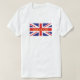 Una camiseta que representa una bandera que consiste en una combinación de Union Jack y de las barras y estrellas y las palabras "51.o estado" a través de ella.