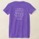 La conciencia del cáncer de páncreas usa una cinta morada para crear conciencia sobre la causa. El arte de la camisa muestra una pintura de ángel de cinta de conciencia púrpura. El mensaje frontal de la camiseta del ángel de la conciencia señala "CURE CURE Pancreatic Cancer". En la parte posterior de la camisa aparece el mensaje de la causa "Espero y apoyo la toma de conciencia para curar el cáncer de páncreas". La ropa de arte de la cinta de ángel de la conciencia púrpura se puede personalizar con mensajes personalizados para hacer ropa de evento de gran causa para camisetas de recaudación de fondos, camisetas de caminatas del equipo de grupo, regalos de camisetas de conciencia u otros eventos de causa especial para la mercadería, para ayudar a aumentar la conciencia pública de esta causa por la ayuda de la sociedad en crear ayuda y causar cambio.