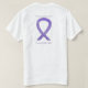 La pintura de una cinta violeta, lavanda u orquídea se muestra en este personalizado causando conciencia a los camisetas de ropa. La cinta de sensibilización sobre lavanda apoya todo tipo de cáncer. Personalice las camisetas de adelante y atrás con su propio mensaje o tema de la cinta de sensibilización para hacer artículos especiales de ropa de cinta para el cáncer. El arte de la camiseta de la cinta de ángel de la conciencia de lavanda se puede personalizar con mensajes personalizados para hacer camisetas de gran causa para ropa de recaudación de fondos, camisetas de caminatas del equipo de personalizados, regalos de conciencia personal u otros eventos o ocasiones especiales de concientización de causas.