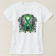 La cinta verde teal y lima con alas de ángel y un patrón filigrana. Esta cinta representa la Fibrosis Pulmonar. La Conciencia de la Fibrosis Pulmonar es en septiembre.