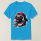 El color es muy bonito al natural, como la foto. El tejido es suave y de buena calidad. Sin defectos en el tintado, ni hilos sueltos o descosidos. Bien la impresión. Los bordes de las letras y el dibujo son nítidos, y el color contrasta muy bien con el de la camiseta.