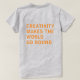 Tshirt for creatives incluye el texto 'la creatividad hace que el mundo gire' en la parte posterior de la camiseta con tipografía en negrita de color rosa sobre un fondo gris. Diseñado exclusivamente para usted por Happy Dolphin Studio. Si necesita ayuda o productos que coincidan, por favor contáctenos a través de nuestro chat de tienda.