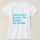 La camiseta para creativos muestra el texto 'la creatividad hace que el mundo gire' en una tipografía brillante azul audaz. Diseñado exclusivamente para usted por Happy Dolphin Studio. Si necesita ayuda o productos que coincidan, por favor contáctenos a través de nuestro chat de tienda.