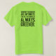 Los diseñadores gráficos son optimistas. Para nosotros, la hierba *es* siempre más verde. Como diseñador gráfico, me han hecho la pregunta "es realmente eso que [inserte su color de elección]" muchas veces. El comentario real en chiste/fuera de color (juego de palabras previsto)/inferencia aquí es "¿saturó sus colores primarios?" La camiseta perfecta de "novela" para expertos y diseñadores gráficos. © W.H. Sim. Todos Los Derechos Reservados. Ver más en zazzle.com/wordsofwhimsy