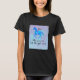 Una camiseta con una cita inspiradora con un tema de la campanilla. La cita dice en vivo que alguien dejó la puerta abierta. Con la imagen de un caballo acuarela libre. Pintado con acuarelas azules y violetas. El fondo es una mezcla de acuarelas rosas y azules.