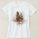 Un ilustracion de una ciudad con un diseño floral sobre ella. Este diseño se ve realmente efectivo en esta camiseta femenina