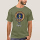 Insignia escudo del clan MacKay rodeada por una correa y hebilla sobre fondo tartán. Texto personalizado.