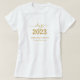 Celebra la graduación con esta elegante camiseta que presenta la clase del 2023 en una tipografía moderna de escritura dorada. Personaliza el año de graduación, el nombre del graduado y la escuela. Fácil de personalizar. ¡Enhorabuena!