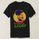El color es muy bonito al natural, como la foto. El tejido es suave y de buena calidad. Sin defectos en el tintado, ni hilos sueltos o descosidos. Bien la impresión. Los bordes de las letras y el dibujo son nítidos, y el color contrasta muy bien con el de la camiseta.