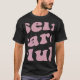 El color es muy bonito al natural, como la foto. El tejido es suave y de buena calidad. Sin defectos en el tintado, ni hilos sueltos o descosidos. Bien la impresión. Los bordes de las letras y el dibujo son nítidos, y el color contrasta muy bien con el de la camiseta.