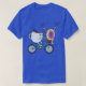 El color es muy bonito al natural, como la foto. El tejido es suave y de buena calidad. Sin defectos en el tintado, ni hilos sueltos o descosidos. Bien la impresión. Los bordes de las letras y el dibujo son nítidos, y el color contrasta muy bien con el de la camiseta.
