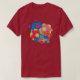 El color es muy bonito al natural, como la foto. El tejido es suave y de buena calidad. Sin defectos en el tintado, ni hilos sueltos o descosidos. Bien la impresión. Los bordes de las letras y el dibujo son nítidos, y el color contrasta muy bien con el de la camiseta.