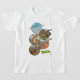 El color es muy bonito al natural, como la foto. El tejido es suave y de buena calidad. Sin defectos en el tintado, ni hilos sueltos o descosidos. Bien la impresión. Los bordes de las letras y el dibujo son nítidos, y el color contrasta muy bien con el de la camiseta.