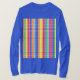 This blue hoodie features a vibrant geometric pattern inspired by modern abstract art. The colorful grid design stands out beautifully against a rich blue background, creating a stylish and eye-catching look.