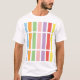 Patrón geométrico lineal, rectangular, rayado de tonos pastel arcoiris de azul, naranja, verde, rosa, púrpura, rojo y amarillo.