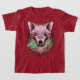 Ilustración audaz de lobo con estilo surrealista: pelaje rosa y rojo, ojos penetrantes y disparejos, y un giro macabro mientras aprieta una mano de zombi. Un diseño vívido y simbólico perfecto para fanáticos del arte de fantasía oscura y merchandising de impacto