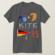 El practicar surf de la cometa - camiseta que navega del banderín de la bandera de GER Alemania. Kitesurfer que practica surf las ondas y el texto completamente adaptable "cometa", "practicando surf - GER" con el número 15 y banderín y "puerto alemanes Richman" de la bandera, texto en el escudo "que navega" e iniciales bandera náutica de "P" y de "R" Alemania kitesurfing la camiseta náutica.