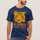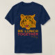 Un tigre guapo con un brillo en los ojos le hace oler los labios y dice: Hoy almorzamos juntos. Camiseta única o única para cualquiera. Personalizable completo. Puede cambiar la imagen y puede cambiar o eliminar tres textos de plantilla. También se puede elegir otro color, estilo y género de la ropa. Diviértete y hazlo.