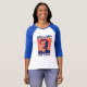 Camiseta raglán de manga 3/4 de Bella+Canvas, Blanco/Azul real, L de adulto