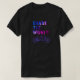 El color es muy bonito al natural, como la foto. El tejido es suave y de buena calidad. Sin defectos en el tintado, ni hilos sueltos o descosidos. Bien la impresión. Los bordes de las letras y el dibujo son nítidos, y el color contrasta muy bien con el de la camiseta.